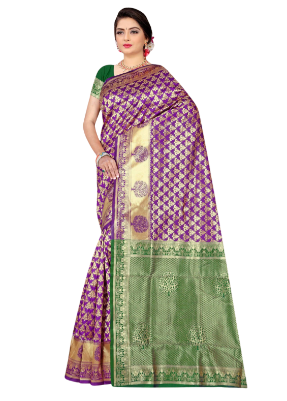 Purple Benarasi Sari with a Green Border